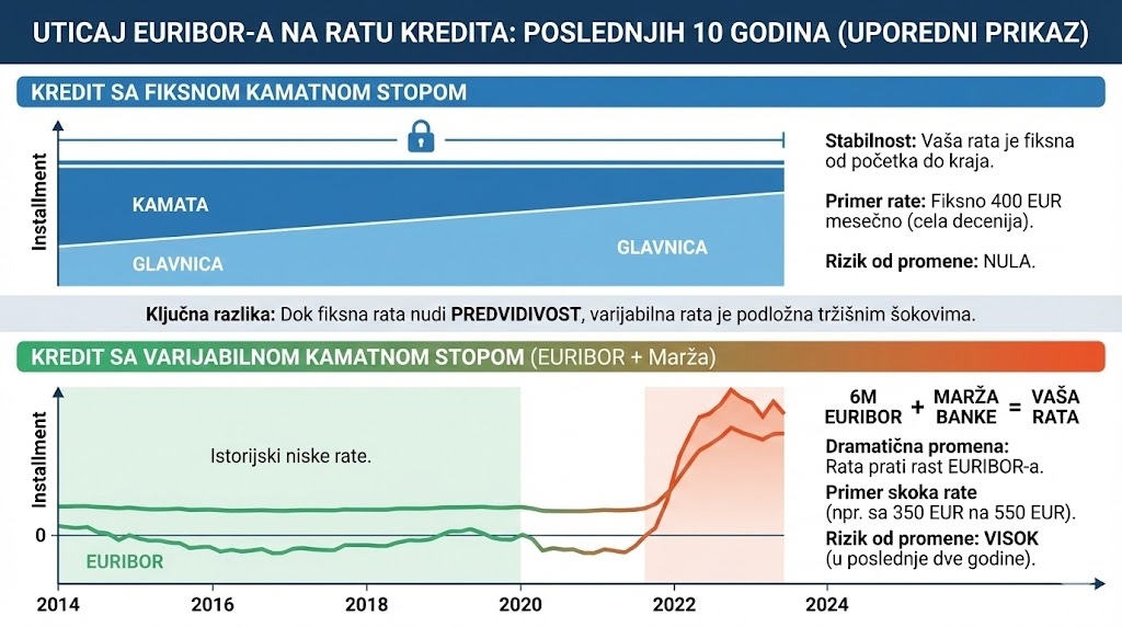 Kada se tome doda činjenica da se stambeni krediti najčešće uzimaju na dug rok, jasno je zašto je važno da se razume razlika između dve opcije pre potpisivanja ugovora.